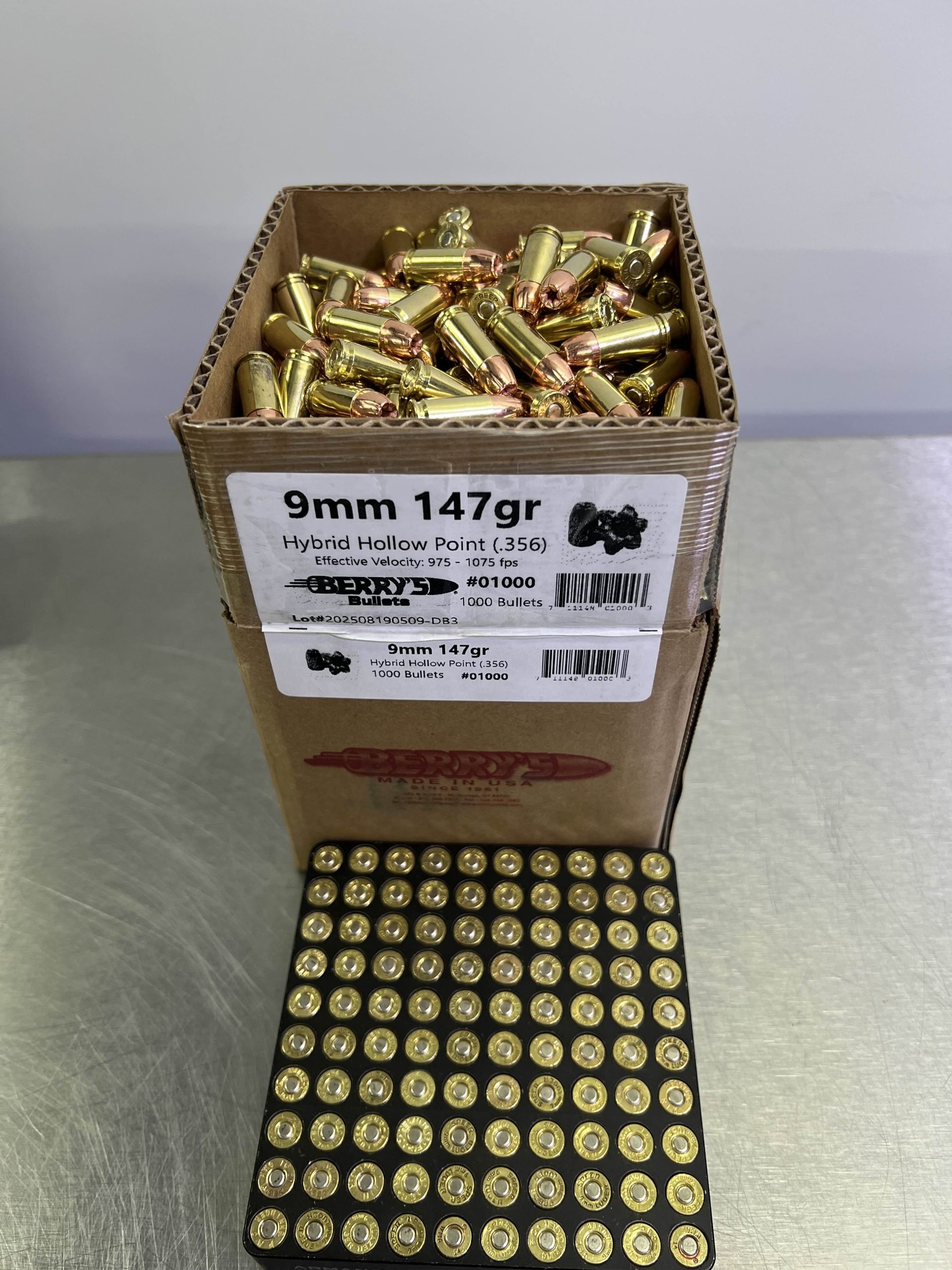 Our 9mm 147gr Hollowpoints come in convenient 50 round bags.