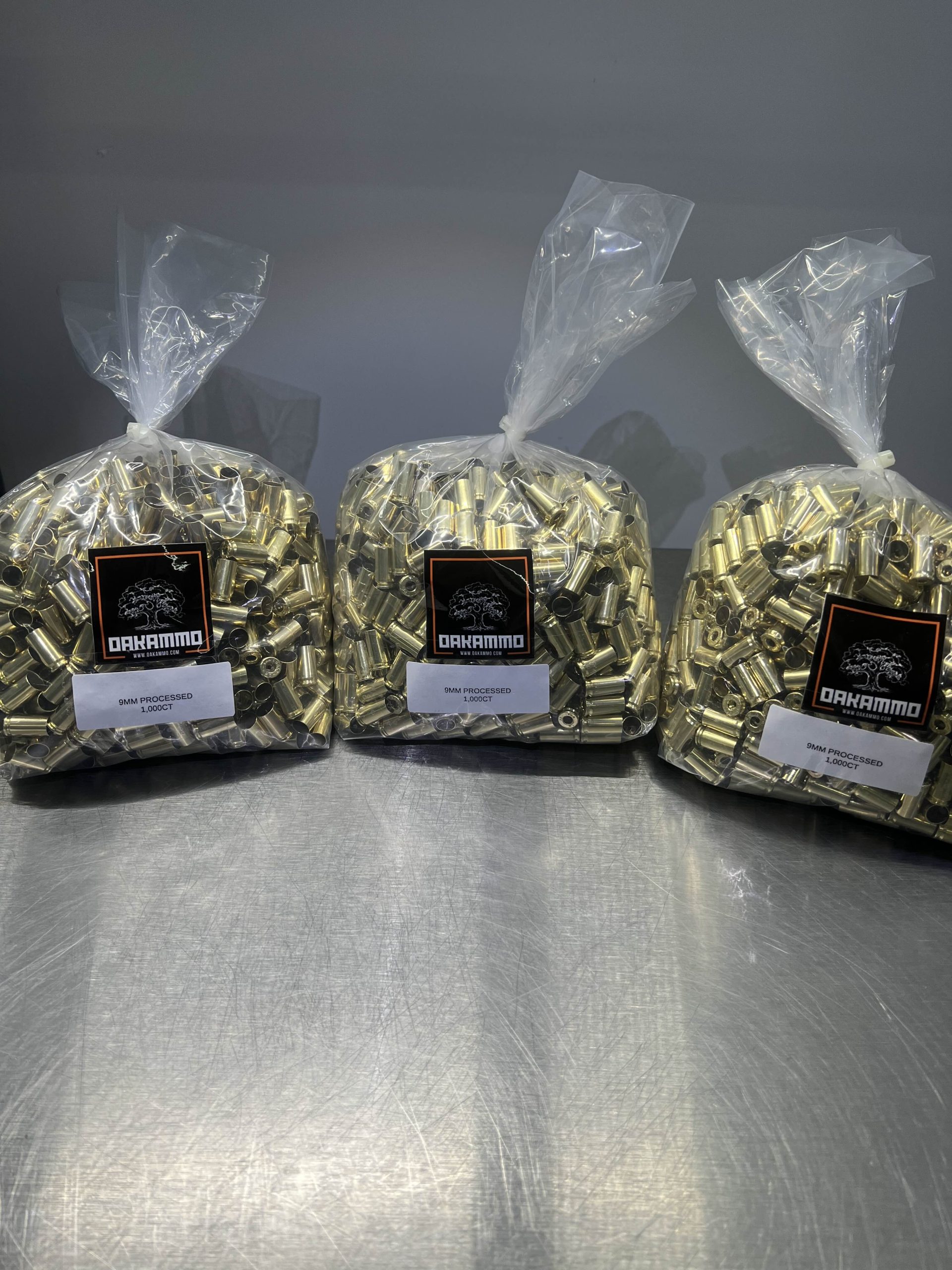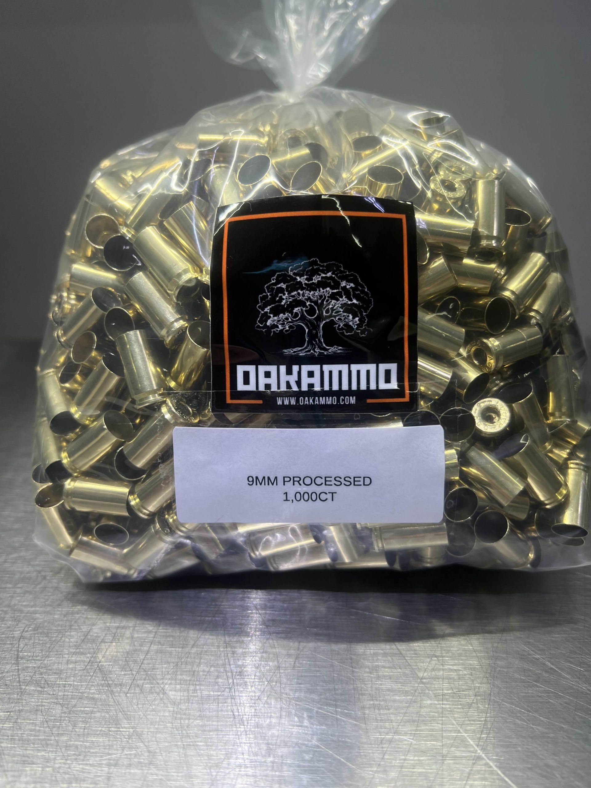 9MM Processed Reman Brass 1000ct - Oak Ammo